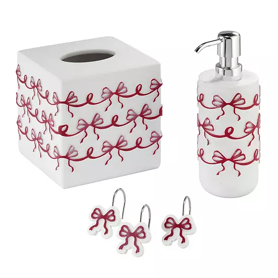 Add a charming touch of holiday spirit to your decor with this stylish lotion pump dispenser from Avanti. Its bright white design with raised red ribbons and cheerful bows not only elevates your bathroom aesthetic but also offers practical elegance for everyday use.