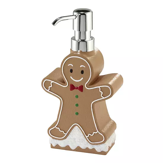 Add a touch of whimsy to your space with this delightful gingerbread man lotion pump from Avanti. Crafted with durable hand-painted resin, it combines functional charm with a playful design that brings joy to your daily routine, making it a versatile addition to any bathroom or kitchen decor.
