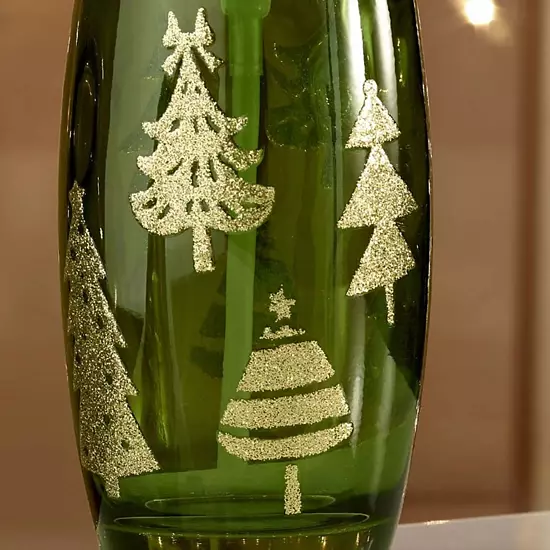 Elevate your holiday decor with this stylish lotion pump from Avanti, featuring a rich spruce green glass base adorned with beautifully designed gold Christmas trees. Its blend of fashion and function makes it the perfect addition to any space, delivering a touch of seasonal charm with every pump.