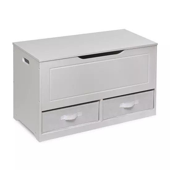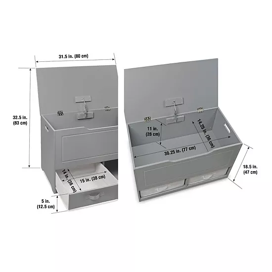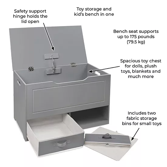 Badger Basket’s multi-talented Up and Down Toy Box handles large toys in the top bin and small items in the two removable and reversible baskets below. Safety built-in for peace of mind. Kids can help themselves to favorite items and clean up before bed.