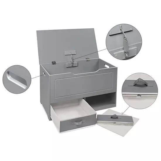 - Safety support hinge holds the lid open so it can’t slam shut