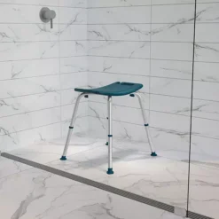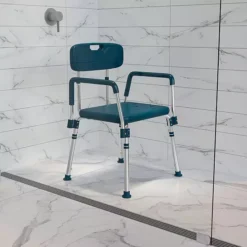 Emma And Oliver Tool-Free 300 Lb. Capacity, Adjustable Navy Bath & Shower Chair W/ Non-slip Feet