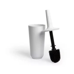 IDesign Compact Toilet Brush And Plunger Set For Bathroom Cleaning And Storage – White