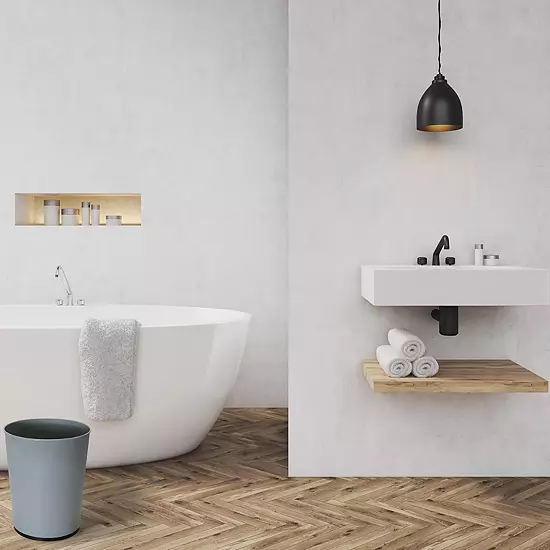 Clean up your bathroom in style with this trendy Bath Bliss trash can.
