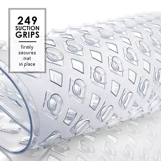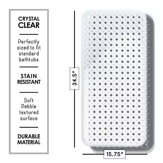 Enjoy worry-free bathing with Clara Clarks’s Non-Slip Shower and Bathtub Mat, designed for safety, comfort, and style. Crafted from non-toxic, skin-friendly materials, this BPA-free, phthalate-free, and latex-free mat offers non-slip protection for the whole family. Its larger size provides excellent coverage, and the clear, discreet design blends seamlessly into any bathroom. 249 powerful suction cups keep it securely in place, while 230 drain holes ensure efficient water drainage. Easy to clean and featuring a soft, pebbled surface, it’s both durable and comfortable, making it the perfect addition to any standard bathtub.
