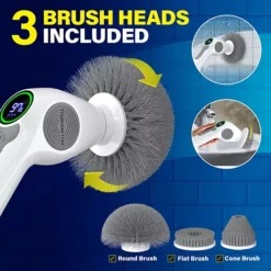 Bell+Howell Scrubtastic Pro Electric Rechargeable Spin Power Scrubber With 3 Rotating Brush Heads