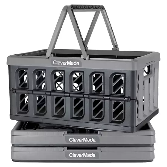 This Clevermade collapsible storage bin 3-piece set is perfect for hauling groceries, staying organized and keeping your home clutter free!