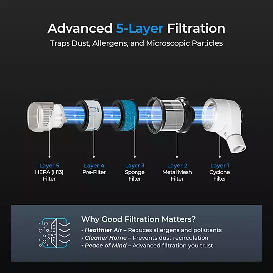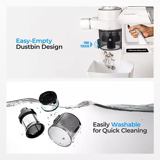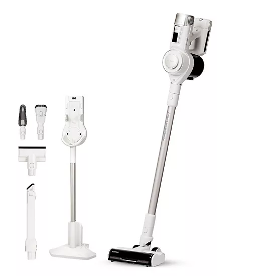 Experience unparalleled cleaning power with the CUCKOO CVC-A1410NW Cordless Vacuum Cleaner, featuring a robust 140 Air Watts of suction that effortlessly tackles stubborn stains on any surface. With a smart dust sensor, a 5-layer filtration system, and up to 38 minutes of runtime, this versatile vacuum includes essential accessories to meet all your cleaning needs.