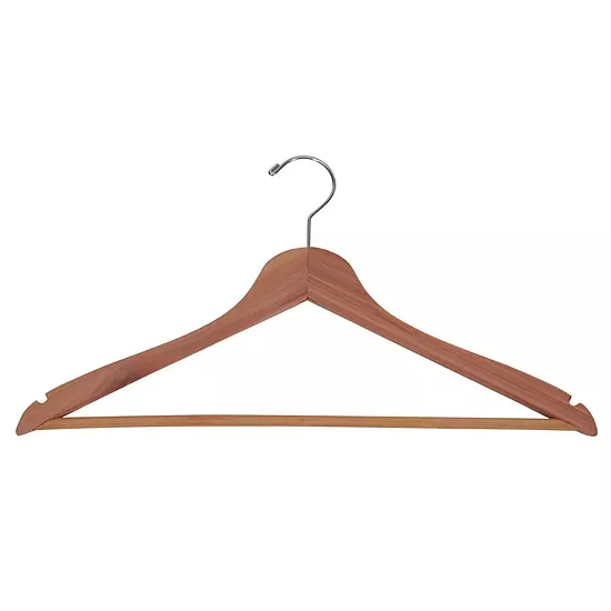 - Helps maximize your closet hanging space, Cedar repels moths and odors, Naturally aromatic from renewable red cedar, Swivel hook, Sturdy, Rounded shape to prevent creases, Fixed bar for pants, Side notches to prevent slipping, Use for clothing, coats and jackets
