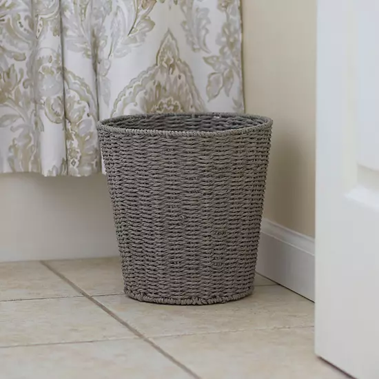 Add a designer look to your bathroom with this Household Essentials wicker wastebasket.