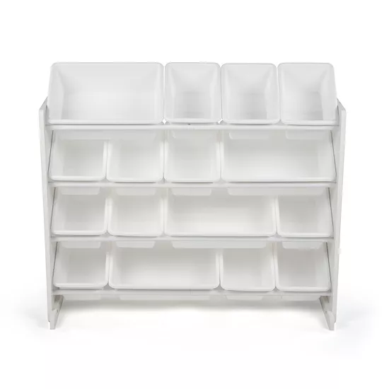 - Includes 12 regular size and 4 double size rugged plastic bins (equivalent to 20 bins)