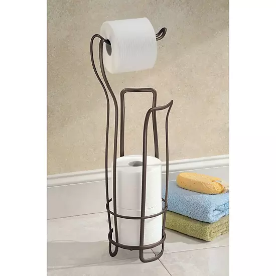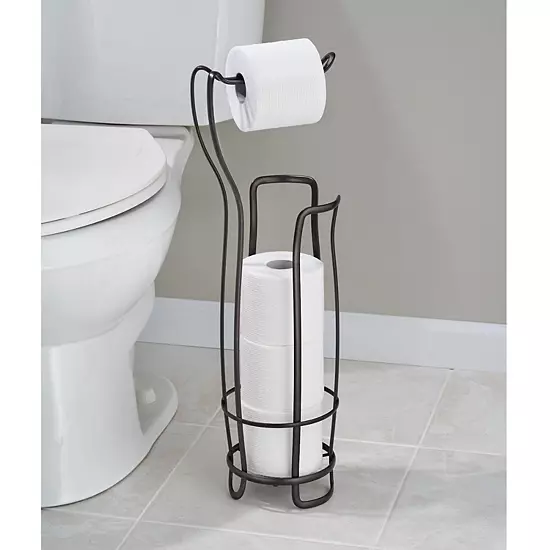 Give your bathroom space a fresh new touch with this Axis bronze free standing toilet paper holder from iDesign.