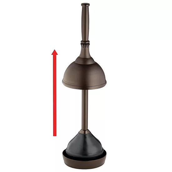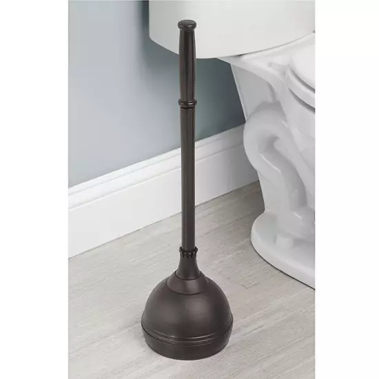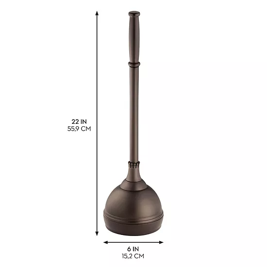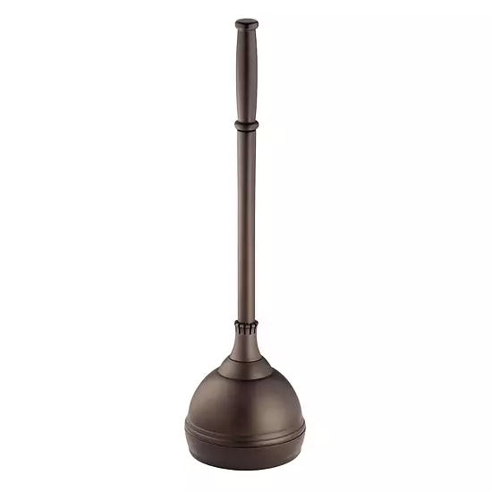 The iDesign Kent Bathware Toilet Plunger and Holder in bronze offers a stylish and functional storage solution for your bathroom. Its enclosed design keeps the plunger hidden while ensuring easy access.