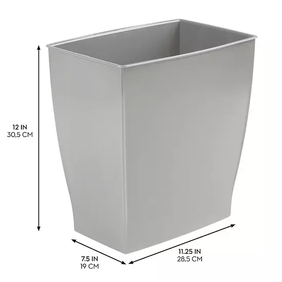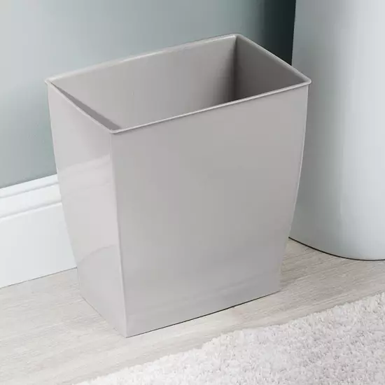 The iDesign Mono Spa Rectangular Trash Can brings a sleek, modern touch to any bathroom, bedroom, or office. With a 2.5-gallon capacity, this durable gray bin is perfect for managing daily waste.