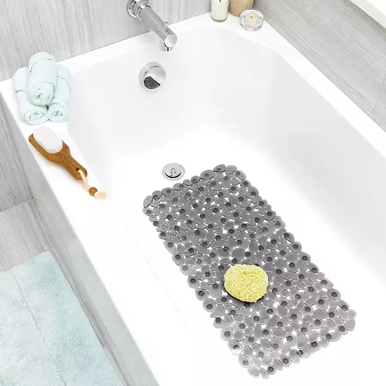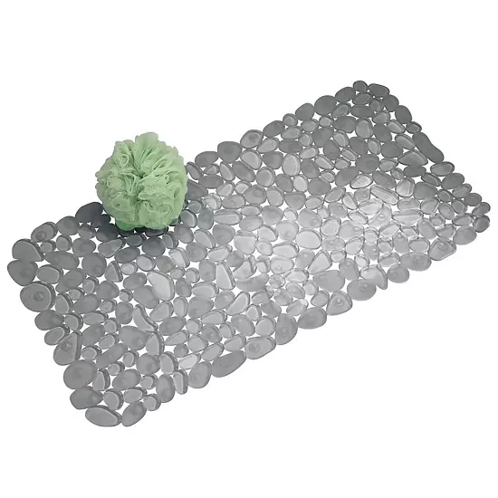 The iDesign Pebblz Non-Slip Suction Bath Mat in graphite blends safety and style with its textured pebble design. Its strong suction cups keep it securely in place, providing a reliable non-slip surface.
