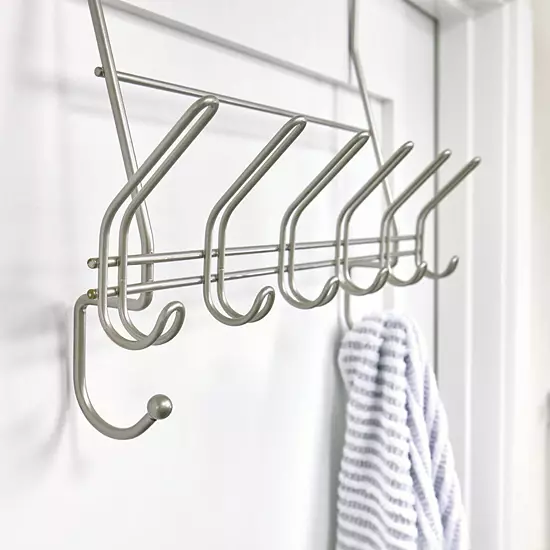 - Over the door combo rack features 12 hanging points and a thin towel bar to take advantage of space that would be wasted in your bedroom, closet, bathroom, mudroom, garage, or dorm