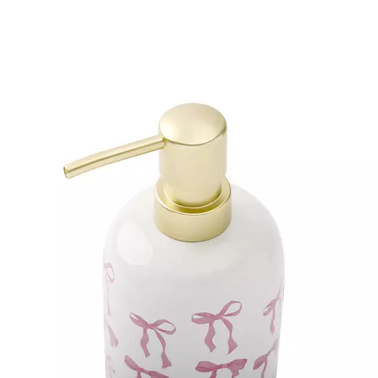 Add a touch of romance to your sink with this bow print soap dispenser from MAISON DE BASE.