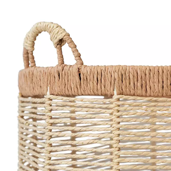 - Natural twisted paper cord baskets offer organic texture and visual appeal