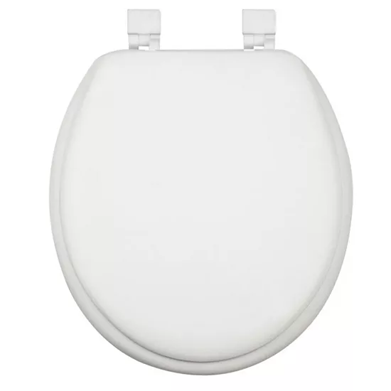 Strong plastic seat and cover are designed to provide an elegant or rustic look, while adding functionality and durability to your bathroom 17 x 14 x 1 Plastic foam protected hinges are easy to install Seat and cover provide a soft cushion for maximum comfort Padded plastic design provides a high quality sturdy seat that fits most standard round toilets 2 bracket mount makes for an easy, quick installation