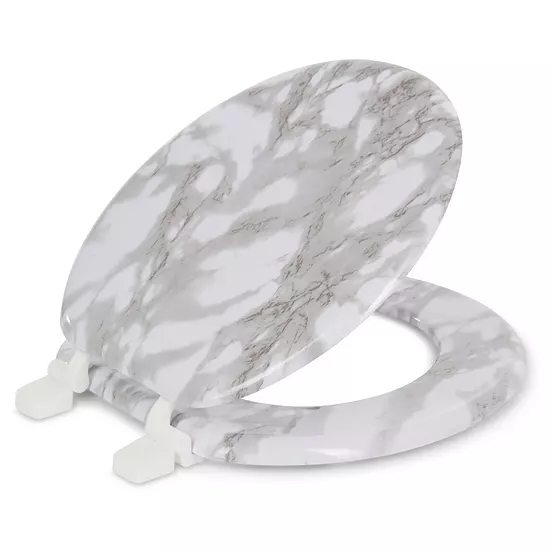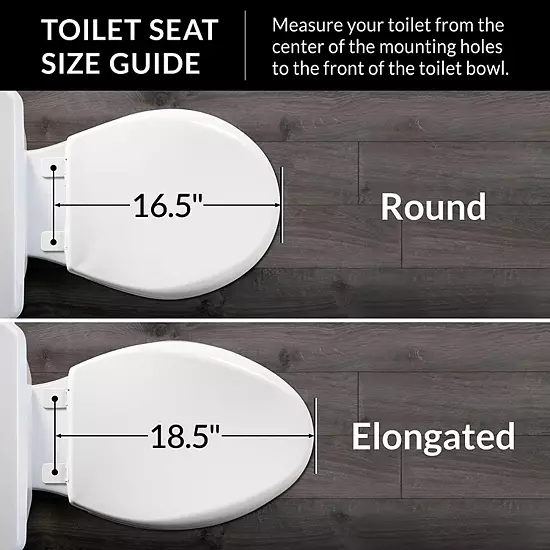 - Molded wooden design provides a high quality sturdy seat that fits most standard round toilets