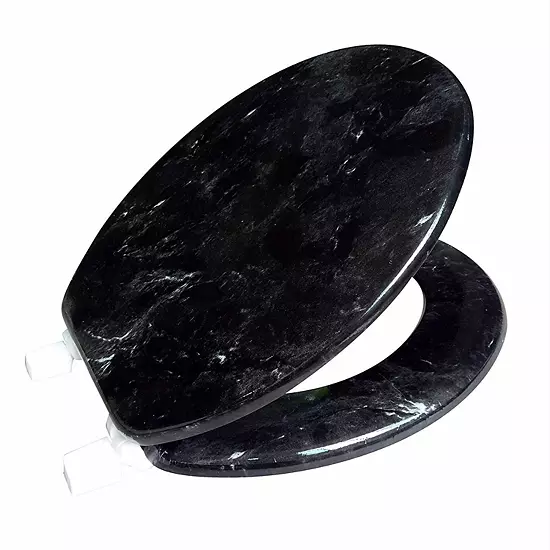 Enjoy the benefits of the traditional round wood toilet seat and lid finish. This elegant Heavy Duty Round Toilet Seat is both sturdy and durable and provides an attractive decor finish to your bathroom and toilet area. The attractive provides a stark contrast for any bathroom decor. Shift your style from plain white to pitch black for a change of bathroom scenery. Strong wooden seat and cover are designed to provide an elegant or rustic look, while adding functionality and durability to your bathroom Metal hinges are easy to install Seat and cover provide a soft cushion for maximum comfort Molded wooden design provides a high quality sturdy seat that fits most standard round toilets 2 bracket mount makes for an easy, quick installation.