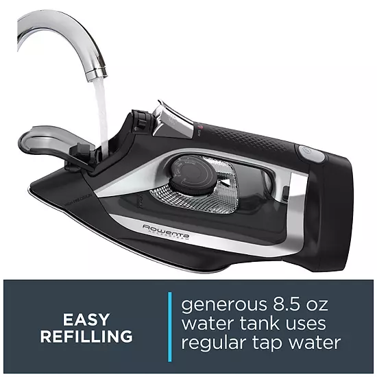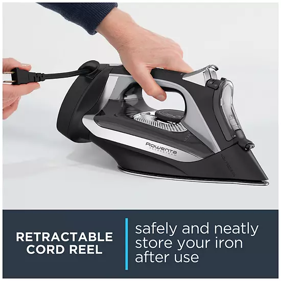 This powerful Rowenta Access Steam Cord Reel Iron features more than 350 micro-holes for ultimate steam diffusion and convenient storage with automatic cord reel.