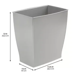 IDesign Mono Spa Rectangular Trash Can For Bath, Bedroom, Office – 11″ X 7″ X 12″, 2.5 Gallon, Gray
