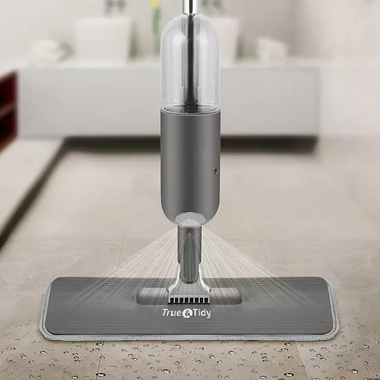 Experience effortless cleaning with the Salav True & Tidy Spray Mop with 360 Swivel Head and Removable Water Tank, featuring an extra-wide 20 inch spray surface that tackles dirt and stains with ease. Say goodbye to traditional mopping and hello to a faster, more efficient way to maintain your floors.