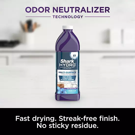- REDUCES ODORS: Shark Hydro™ Multi-Surface Concentrate deep cleans and removes odors from hard floors. Fast drying. Streak-free. No sticky residue.