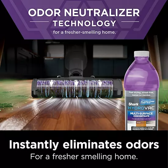 - Shark HydroVac multi-surface concentrate with odor neutralizer technology instantly eliminates and prevents odor from reforming on floors and area rugs. Perfect for pet owners.