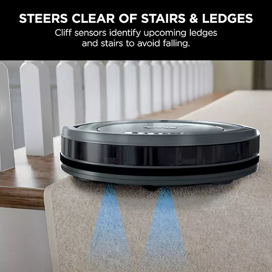 - INTELLIGENT BUMPER & CLIFF SENSORS: Shark ION Robot® senses ledges and stairs and avoids bumping furniture and walls.