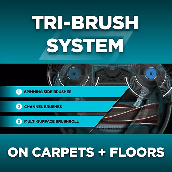 - THREE BRUSH TYPES. ONE POWERFUL CLEAN: Tri-Brush System combines side brushes, channel brushes, and a multi-surface brushroll to handle debris on all surfaces