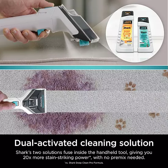 - 20X MORE STAIN-STRIKING POWER*: Shark’s two unique solutions mix & activate inside the handheld stain & spot eliminator to unleash the power of OXY for powerful tough stain elimination, with no premix required‡