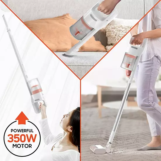 - With its powerful 350W motor, this vacuum delivers impressive suction to tackle even the toughest messes