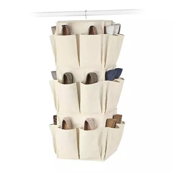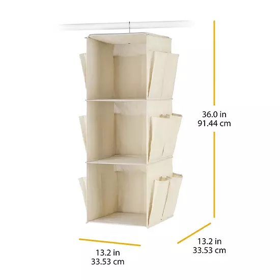 - 1 swivel hanging closet organizer featuring 3 shelves and 18 pockets