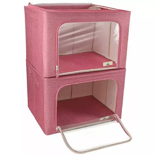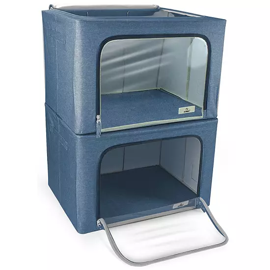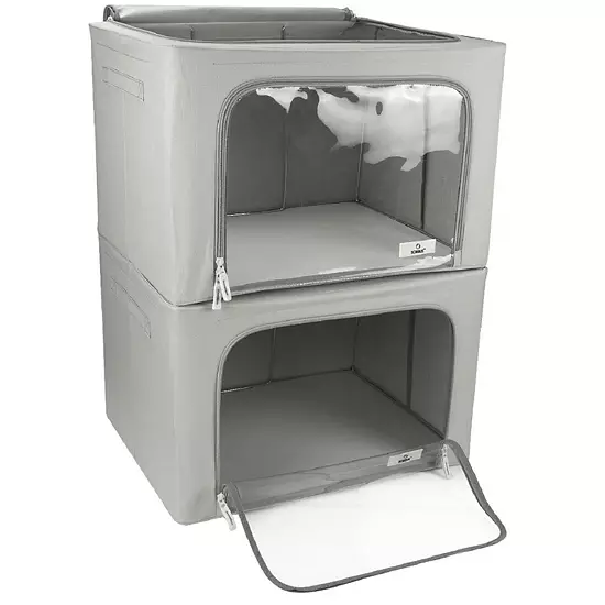 Pack, zip, store, and transport household essentials with this stackable storage bin set, featuring a clear view and divided interior.