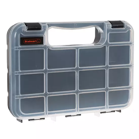 Convenient storage has never been more portable with the Stalwart 14-compartment locking storage case.