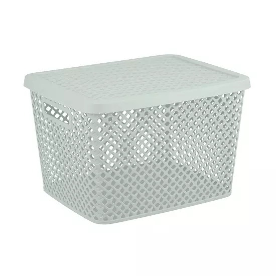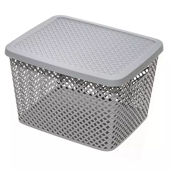 This extra large decorative plastic storage basket with lid from STARPLAST offers a large capacity, stackable storage solution to help get you organized.