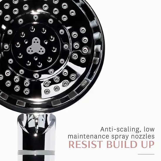 Beauty begins in the showerbut free chlorine can cause frizz, reduce shine, and damage hair. Elevate your shower experience with the T3 Source Handheld Showerhead, a proven filtration system is a mineral mixture combining calcium sulfide, zinc, and copper to reduce free chlorine from your shower water. The process, known as Redox, also helps to remove rotten egg smell, iron oxide (rust water), dirt, sediment, and odors from your water for a better and cleaner shower experience. A low maintenance spray nozzles resist scale buildup and seven premium spray settings provide the ultimate luxurious shower experience.