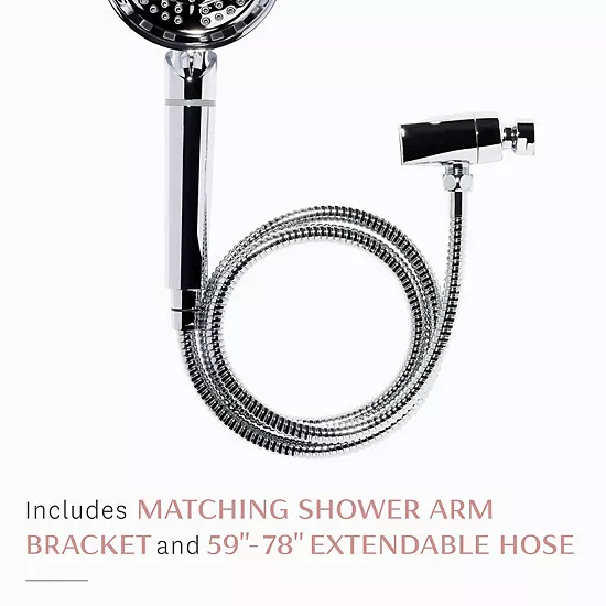 The included filter should be replaced every six months (or 10k gallons) for optimal results. The rated service flow is a maximum of two gallons per minute, the maximum working pressure is 80 pounds per square inch, and the maximum operating temperature is 120 degrees F. This product comes with a matching shower arm bracket, 59- to 78-inch extendable hose, and a two-year manufacturer’s warranty, which offers comprehensive coverage and support options.