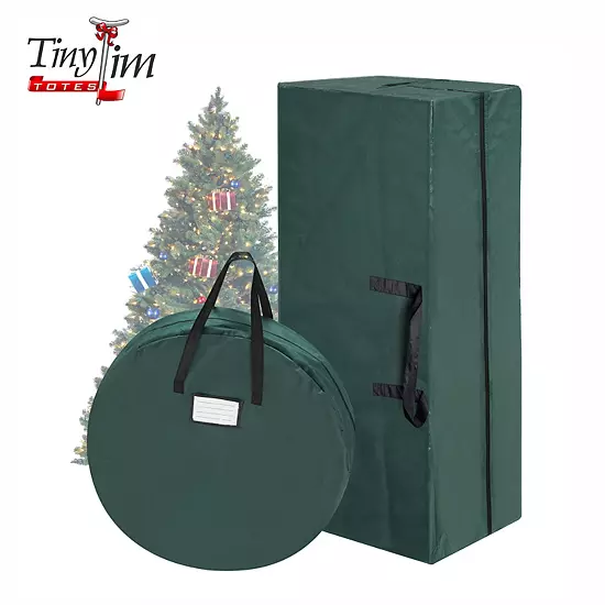 Keep your treasured holiday decorations safe with this Christmas tree and wreath storage bag set from Tiny Tim Totes.