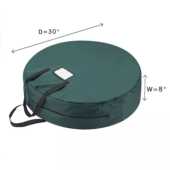 - Wreath storage bag: 30″H x 30″W x 8″D