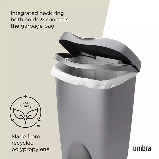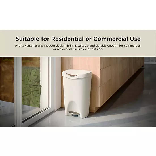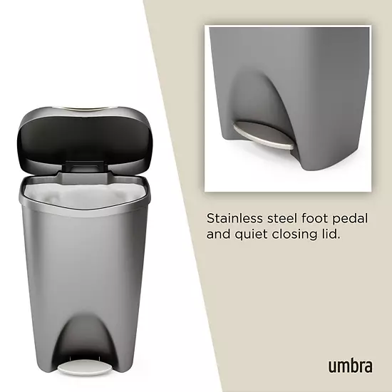 The Umbra Brim Step Can, 13 Gallons, combines sleek design with a user-friendly step mechanism for effortless trash disposal.