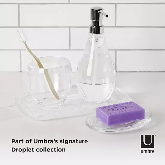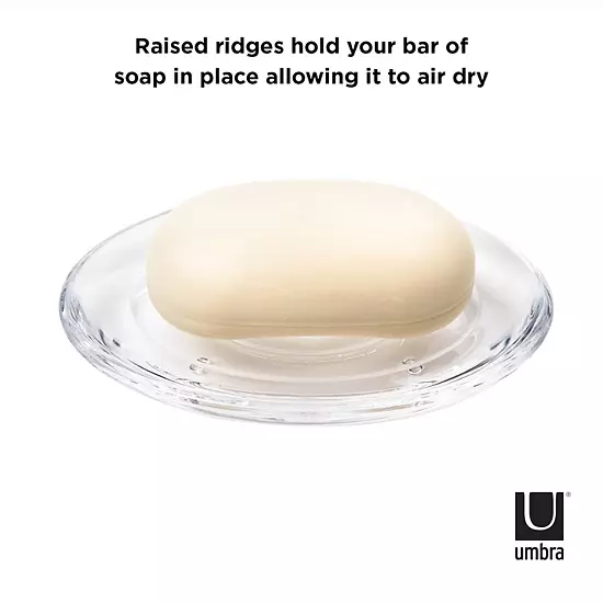 You’ll love the simple design of this Umbra Droplet Clear Soap Dish.
