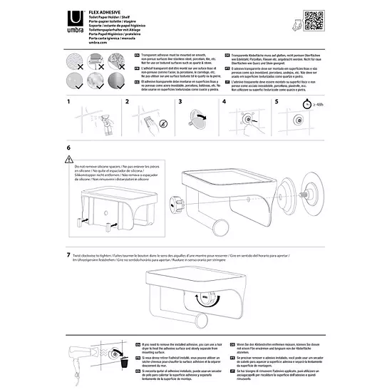 - Non-damaging, waterproof adhesive strips that can be applied on various surfaces such as tiles, concrete, etc. (does not work on porous surfaces)