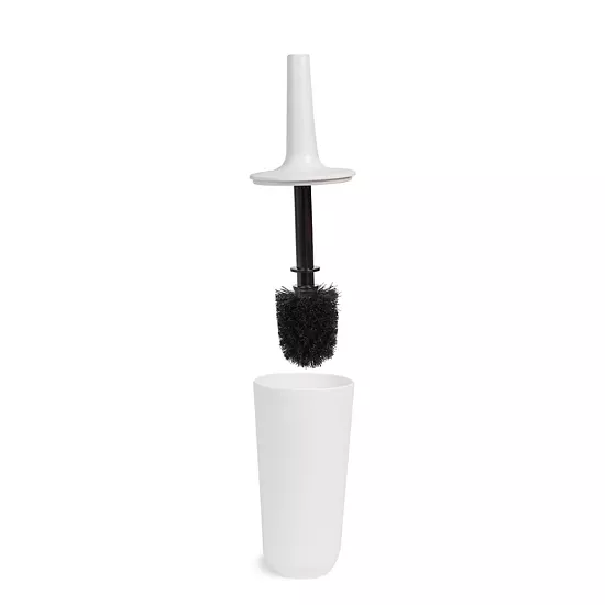- It has an enclosed holder that opens and closes using the toilet brush itself, which has the lid of the holder built into its handle